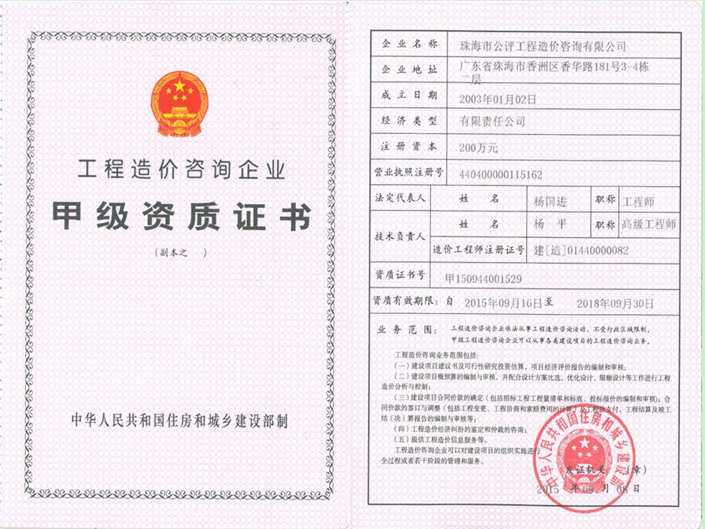 产品名称丨工程造价咨询甲级资质及工程招标代理甲级资质
