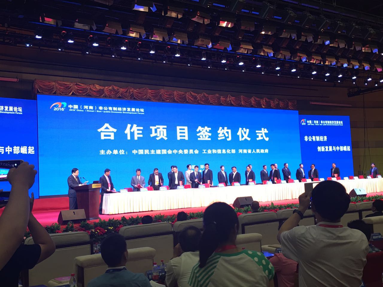 6月是麦收季节,中原大地一片金黄,河南非公有制经济也到了“收获季”。2016年中国(河南)非公有制经济发展论坛于6月13日-15日在河南郑州召开,来自全国各地29个代表团、1300名嘉宾、客商汇聚郑州,80个项目集中签约,803亿资金在河南大地“落地”。我公司董事长和战红、总经理孙留锁代表洛阳民建参加了论坛。