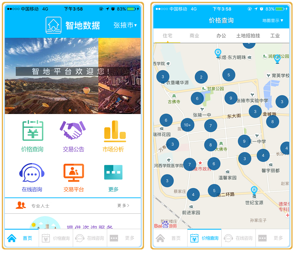 智地平台作为一家房地产估价机构平台,成员机构已覆盖全国近100个城市。智地平台打造的房地产大数据APP——“智地数据”,提供免费的房地产基础信息及价格查询、图片信息展示、住宅价格预评、房地产资讯查阅等。现已覆盖全国103个城市,数据还在不断更新中!