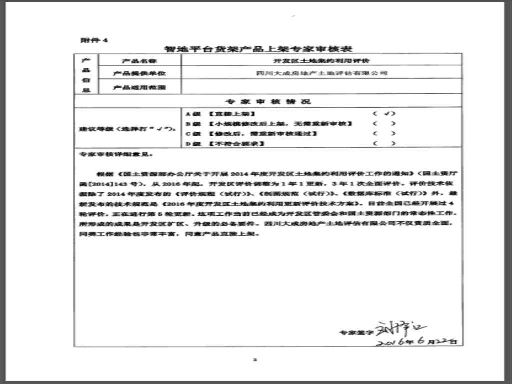 自2008年至今的五轮评价,四川大成公司基本每轮评价都承担了18个左右的国家级和省级开发区,例如:成都高新技术产业开发区、成都高新综合保税区、四川眉山经济开发区、四川夹江经济开发区、金牛高新技术产业园区、四川绵阳工业园区等,在土地集约利用评价方面有着丰富的工作经验和良好的业界口碑,评价成果为开发区升级、扩区调位等提服务。