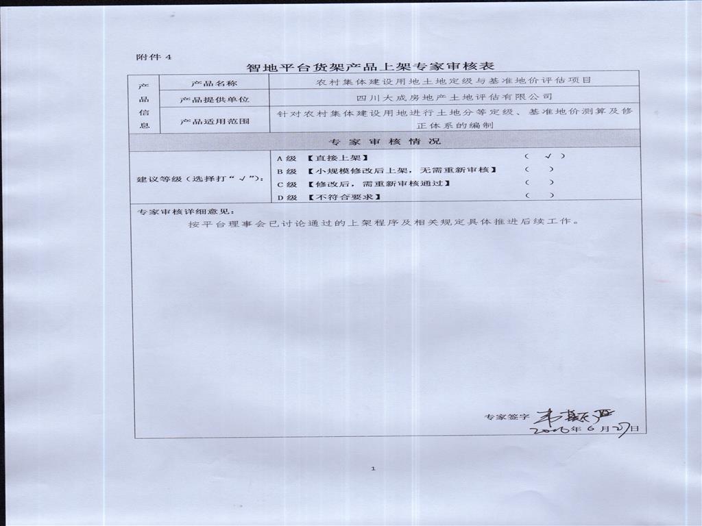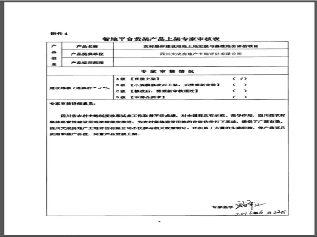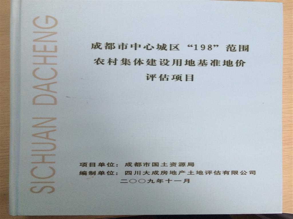 1、作业经验丰富:四川大成公司自成立以来独立承担并完成了大量基准地价更新工作,特别是农村集体建设用地基准地价评估更是走在同行的前列,承担了成都市中心城区、郫县、龙泉驿等7个农村集体建设用地基准地价评估项目,这些项目均得到国土资源部、国土资源厅等各级领导及专家的肯定。