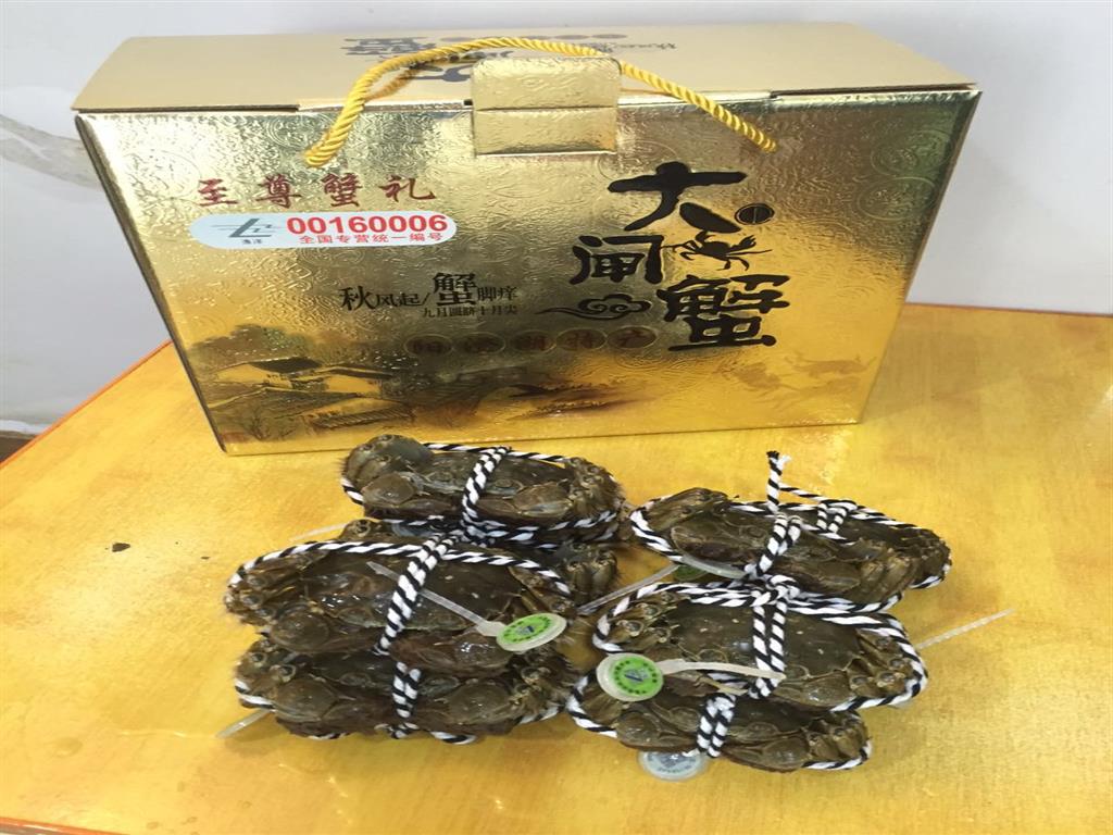 阳澄湖清水大闸蟹享有"蟹中之王"的美称, 其外形特征:青背、自肚、全爪、黄毛、体壮。