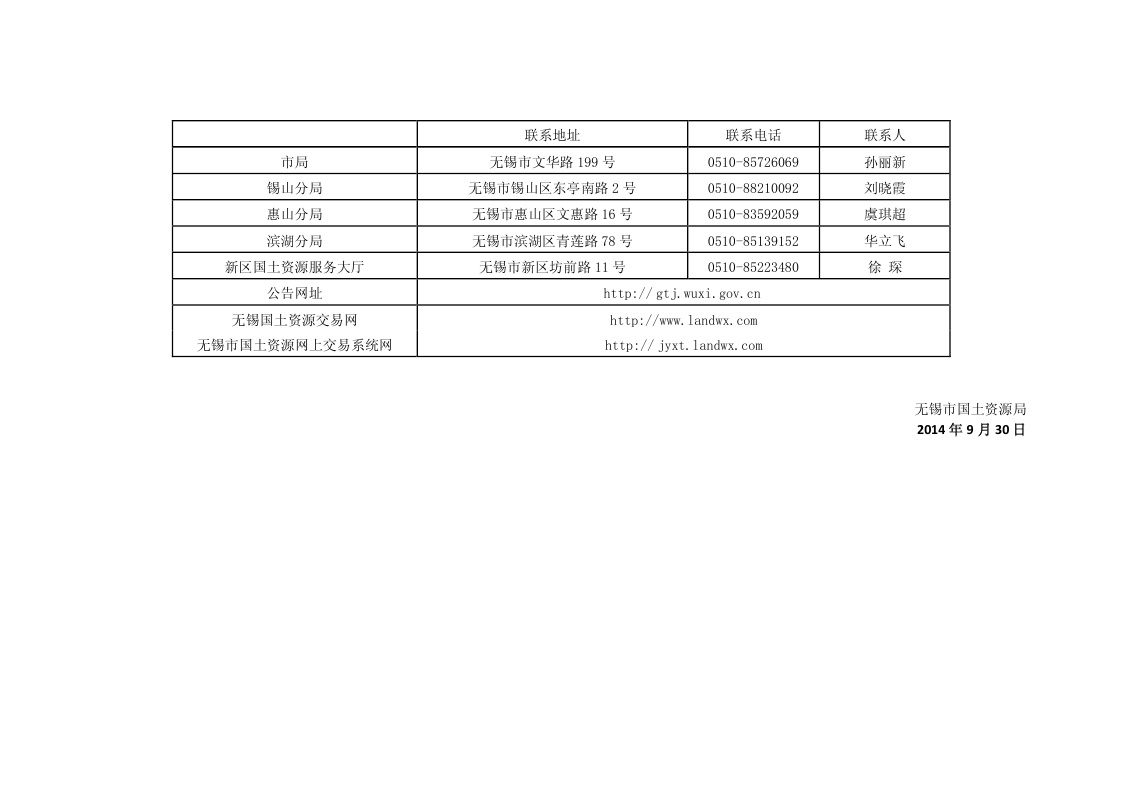 无锡市国土资源局国有建设用地使用权挂牌出让公告锡工告字[2014]48 号
