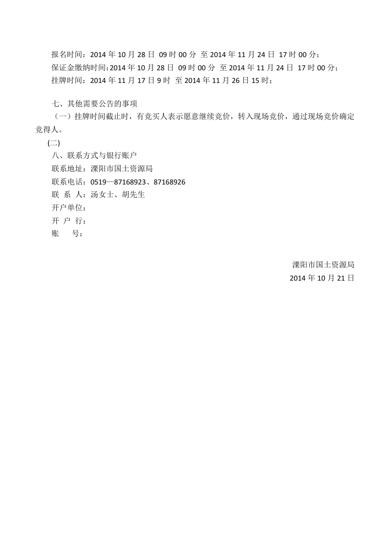 溧阳市国土资源局国有土地使用权挂牌出让公告 溧阳市工挂[2014]69号