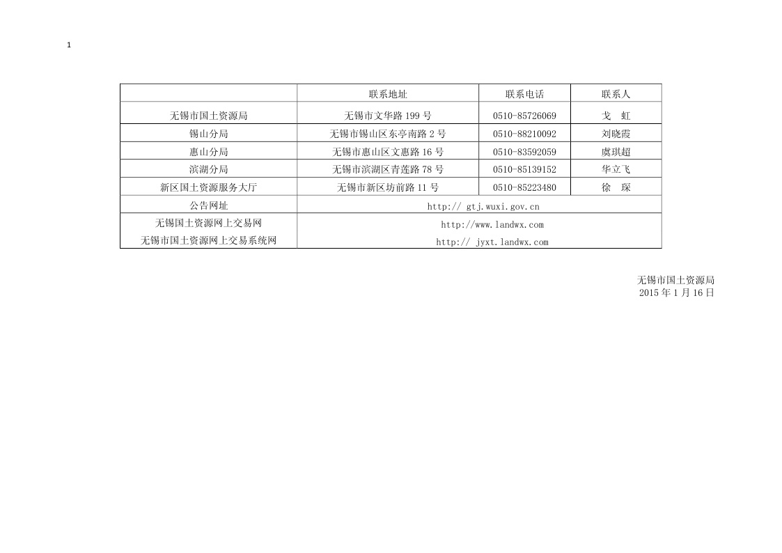 无锡市国土资源局国有建设用地使用权挂牌出让公告 锡经告字[2015]1号