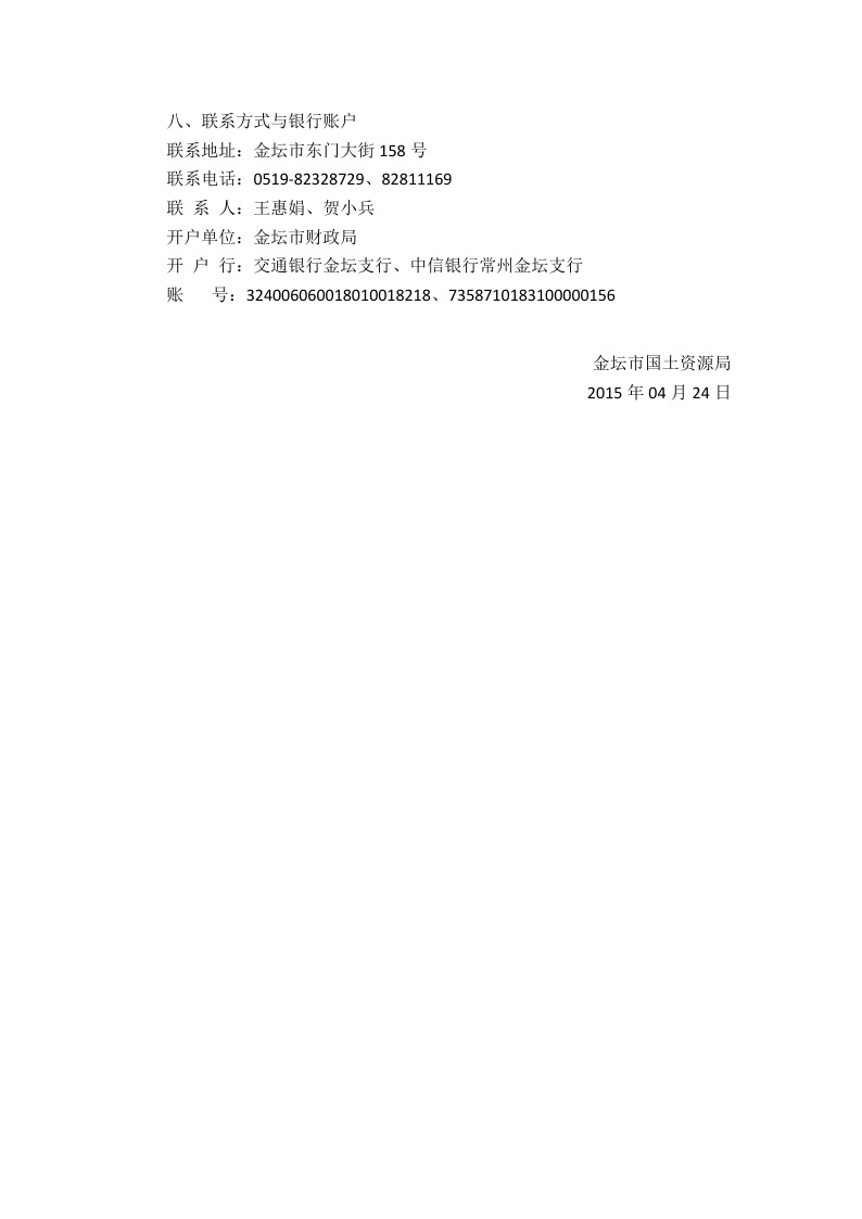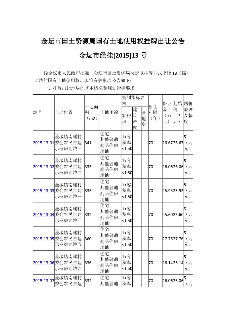 金坛市国土资源局国有土地使用权挂牌出让公告 金坛市经挂[2015]13号