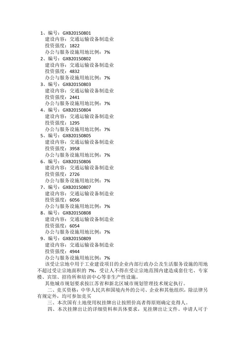 常州市国土资源局国有土地使用权挂牌出让公告GXB201508