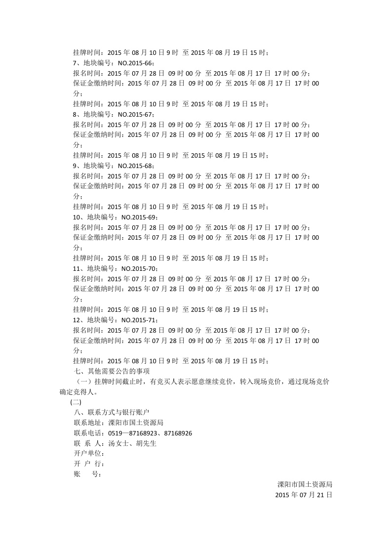 溧阳市国土资源局国有土地使用权挂牌出让公告溧阳市工挂[2015]29号