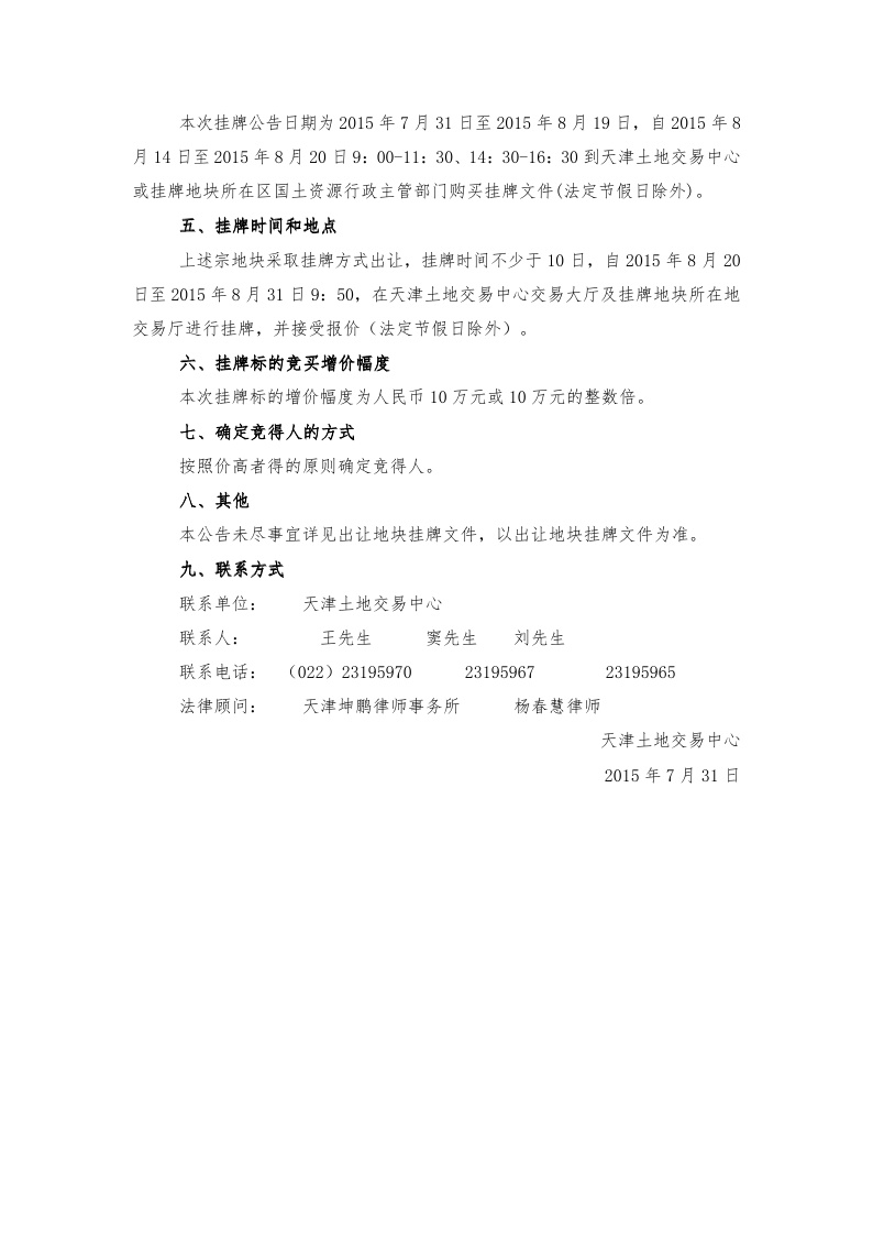 天津市国有建设用地使用权挂牌出让公告 津辰港(挂)G2015-012号