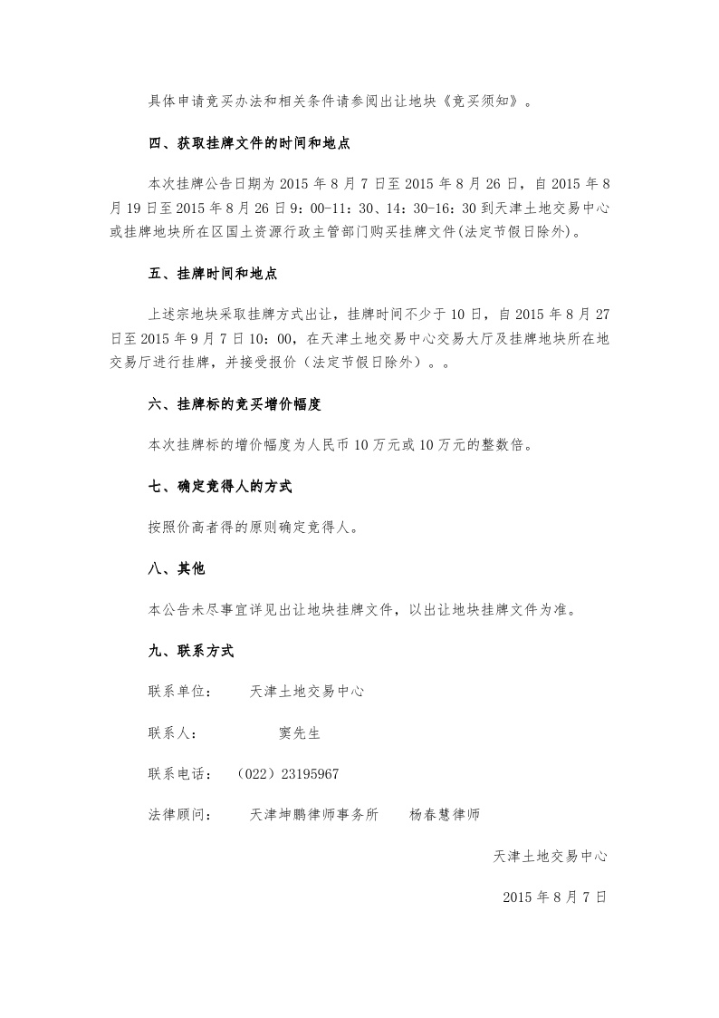 天津市国有建设用地使用权挂牌出让公告 津宝(挂)G2015-008号