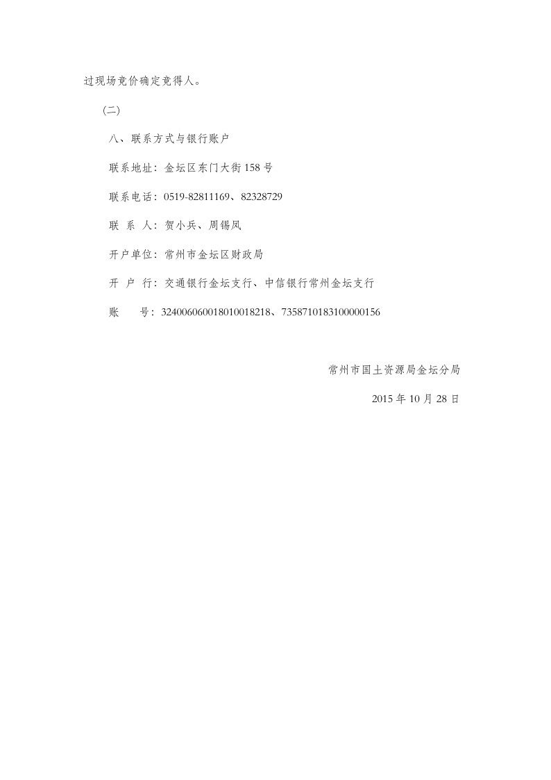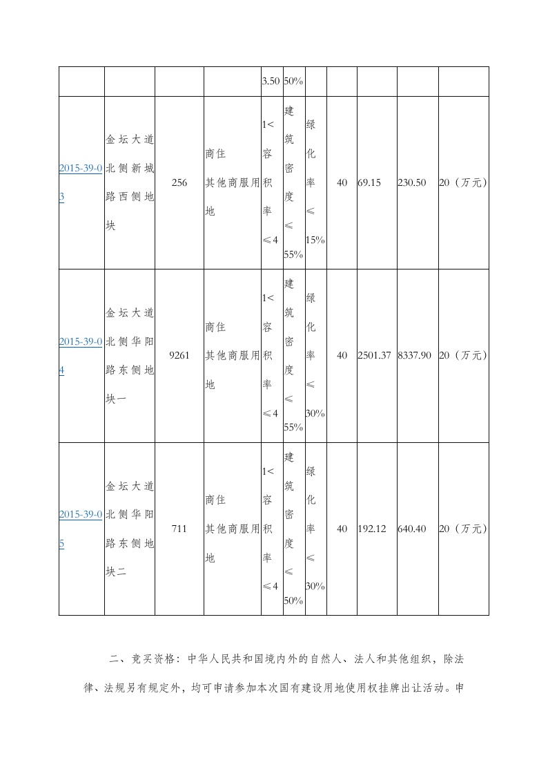 常州市国土资源局金坛分局国有土地使用权挂牌出让公告金坛区经挂[2015]39号